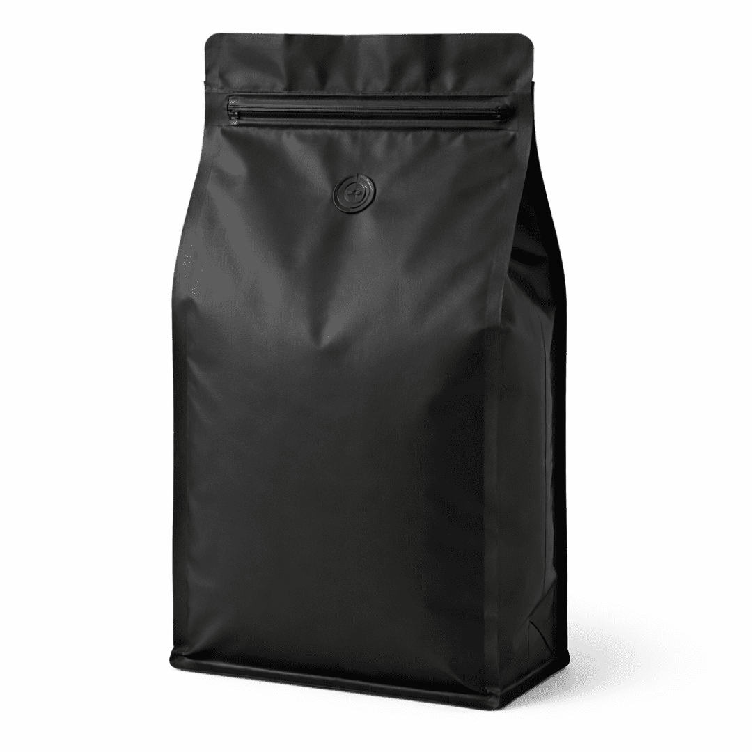Bolsa de packaging de 3 kg tipo box bottom, diseñada especialmente para envasado profesional de café. Incorpora cierre hermético tipo ziploc reutilizable y válvula desgasificadora unidireccional, que permite la liberación del CO₂ sin ingreso de oxígeno, preservando frescura y aroma. Su estructura de alta resistencia con interior aluminizado actúa como barrera contra luz, humedad y oxígeno, asegurando óptima conservación del producto. Ideal para tostadores, distribuidores y formatos de venta mayorista.