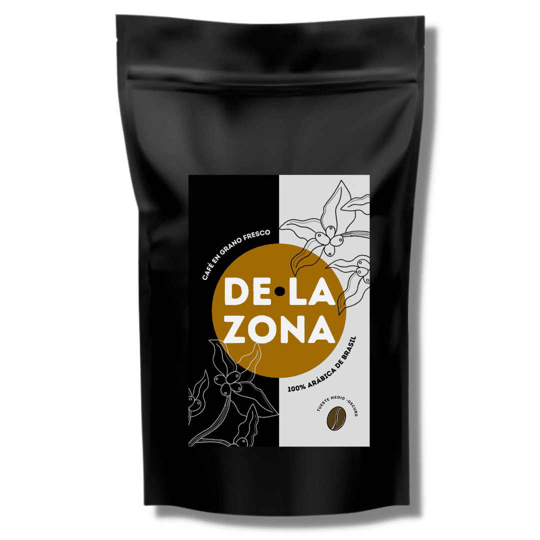 El café De la Zona es un café de grano brasilero 100% arábica. Es un grano de altura de la región Brasilera de Santos. Importado verde y tostado y seleccionado en Uruguay para ofrecer una mayor frescura y sabor. Tiene un tueste medio-oscuro lo cual lo hace ideal para cafeteras espresso, prensas francesas y Moka.