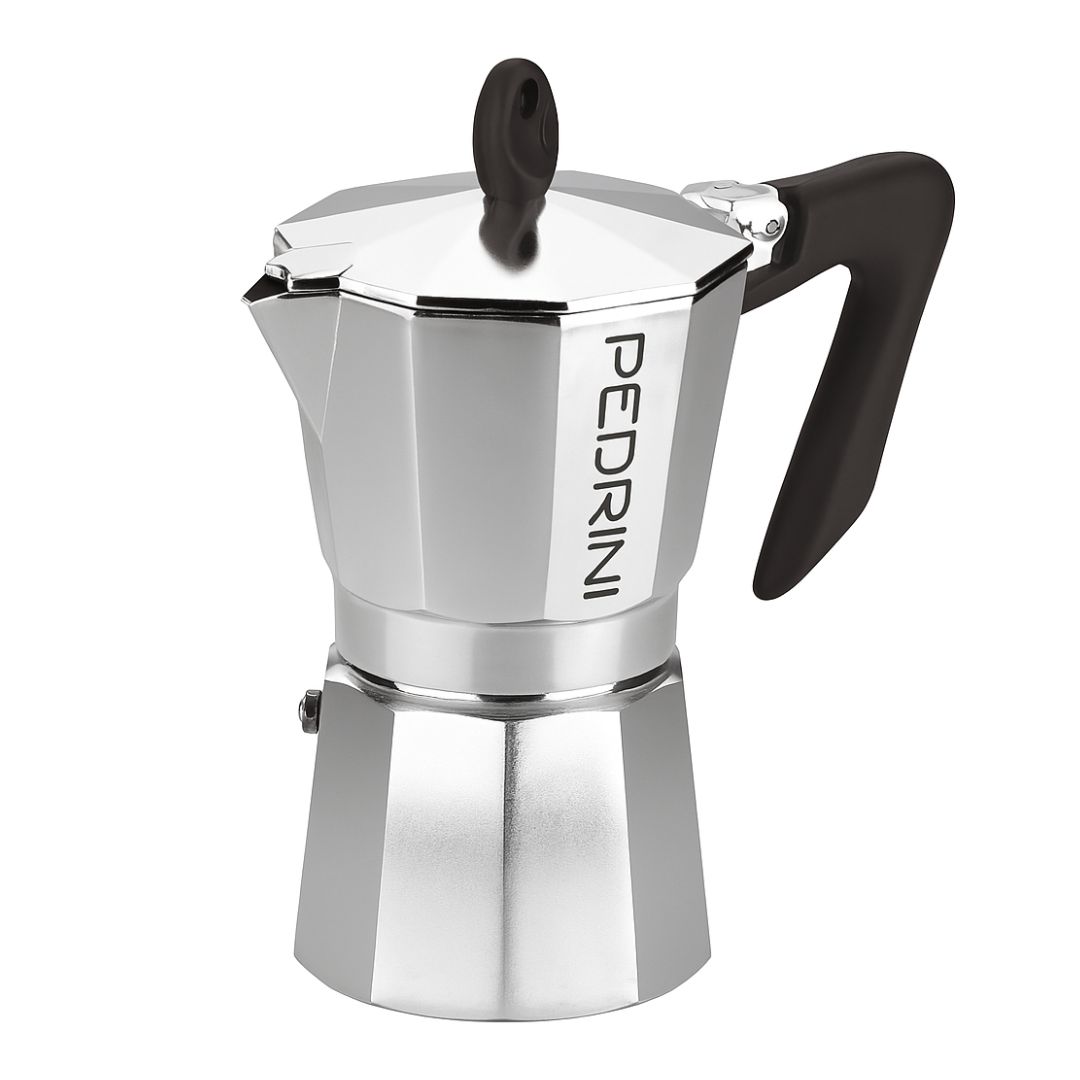La cafetera italiana 6 tazas Pedrini es ya un clásico si pensamos en un método para preparar un café intenso. Pedrini es una empresa Italiana, reconocida mundialmente por su Moka Pot. Con este método sencillo podemos lograr un café muy parecido en sabor al espresso, ya que son ambos métodos por presión, donde el agua pasa por un filtro con la presión del calor.