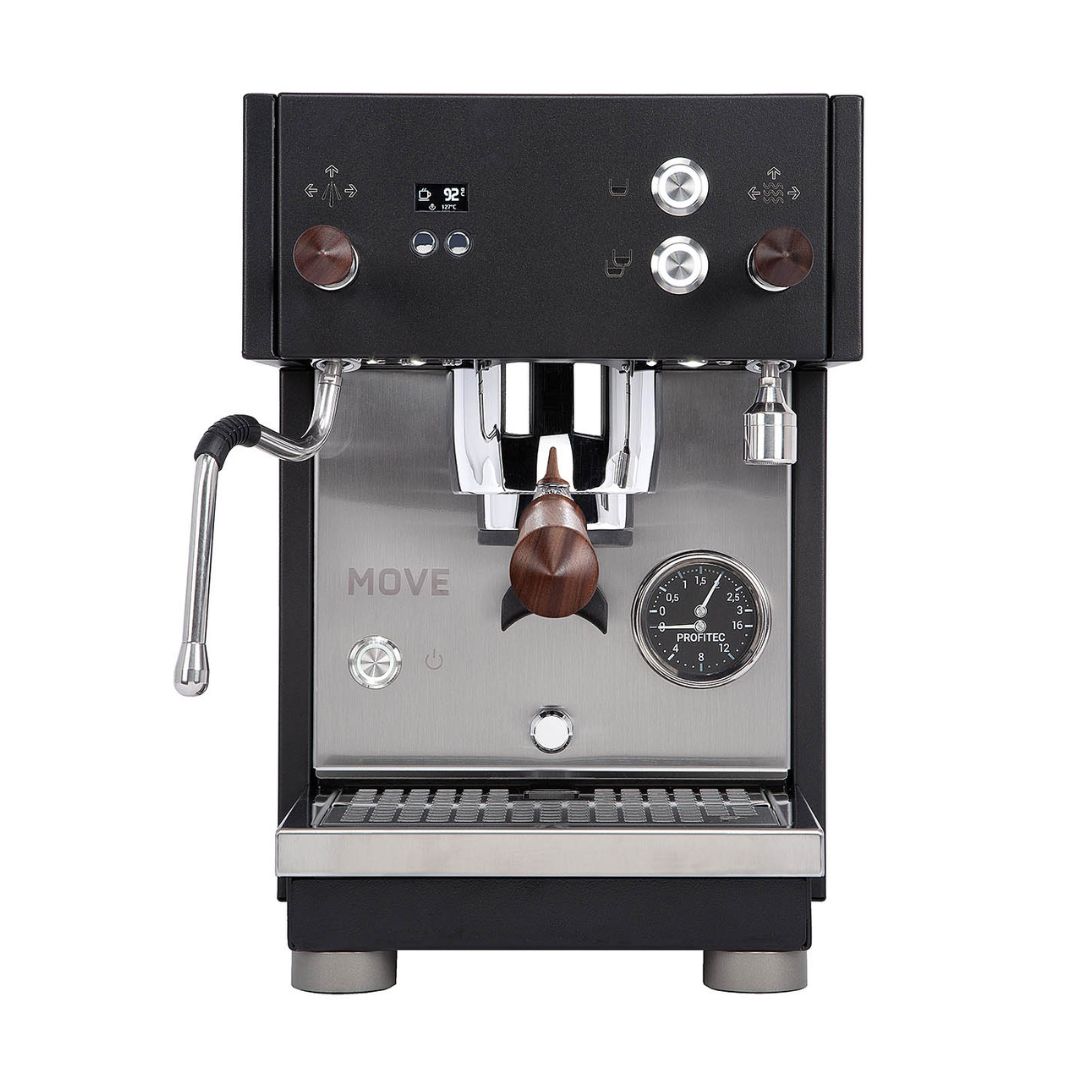 Producto anterior Siguiente producto Máquina profesional Profitec MOVE (dual boiler)USD$3,600Máquina de café profesional Profitec Move, Negro con acentos en madera 58mmEn stock Máquina profesional Profitec MOVE (dual boiler) cantidad Añadir al carrito SKU: RPMM001 Categorías: ESPRESSO PROFESIONALES DE GRUPO, MÁQUINAS, PROFITEC Descripción DescripciónSobre máquina de café Profitec MOVELa Profitec MOVE es una máquina de espresso de doble caldera diseñada para entusiastas que buscan precisión y elegancia. Equipado con un grupo de erogación optimizado tipo anillo, su modo Fast Heat-Up permite que la máquina esté lista para extraer en apenas 9 minutos. Cuenta con una pantalla OLED discreta que muestra el estado, los menús y el tiempo de extracción, y permite programar los botones de dosis con o sin preinfusión. Su bomba de vibración de bajo ruido garantiza un funcionamiento silencioso, mientras que las manijas de nogal americano añadidas a mano le aportan un diseño sofisticado. Además, incluye portafiltro sin fondo con accesorio de silicona y tres filtros diferentes, y facilita el mantenimiento mediante una función automática de limpieza del grupo.Especificaciones técnicas — Profitec MOVEConfiguración: Doble caldera (también disponible en versión de una sola caldera)Caldera de café: 0,4 L en latón, integrada al grupo de preparación tipo “ring” optimizadoCaldera de vapor / agua caliente: 0,75 L en acero inoxidablePotencia eléctrica:230 V / 2200 W (UE, Reino Unido, Suiza, Australia)115 V / 1600 W (EE. UU.)Dimensiones: 270 × 445 × 375 mm (sin portafiltro) / 270 × 475 × 375 mm (con portafiltro)Peso: 18,7 kgDepósito de agua: 2,8 L con adaptador para filtro de aguaBomba: Vibratoria de bajo ruidoControl de temperatura: PID con regulación independiente para café y vaporFunciones programables:Botones de dosis personalizablesPreinfusión ajustableProgramación de encendido y apagadoModo ECOContadores de extracciónLimpieza automática del grupoPantalla: Display OLED con información de estado, menús y tiempo de extracciónGrupo de preparación: Tipo “ring” integrado, con excelente estabilidad térmicaPortafiltro: Sin fondo (bottomless) con accesorio de siliconaIncluye filtros para 1, 2 y 3 tazas + filtro ciego para limpiezaSeguridad:Apagado automático por bajo nivel de aguaDoble manómetro (presión de caldera y bomba)Modo de calentamiento rápido: Fast Heat-Up — lista para usar en ~9 minutosMateriales: Cuerpo metálico con detalles en acero inoxidable y manijas de nogal americano hechas a manoNúmero de modelo: CM500003-00Accesorios incluidos:Portafiltro sin fondo con siliconaFiltros 1/2/3 tazasFiltro ciegoTamperCepillo de limpiezaManual de instruccionesRANCH Café sin FronterasProductos relacionados Vista rápida Vista rápida USD$2,800Máquina profesional Profitec PRO 400 (heat exchange) Vista rápida ¡Oferta! Vista rápida UYU$2,950 El precio original era: UYU$2,950.UYU$2,655El precio actual es: UYU$2,655.Tamper 58mm Profitec Vista rápida ¡Oferta! Vista rápida USD$3,300 El precio original era: USD$3,300.USD$3,135El precio actual es: USD$3,135.Máquina profesional Futurmat Ottima Evo 1 grupo Vista rápida Vista rápida USD$5,200Máquina profesional Futurmat F3 2 Grupos
