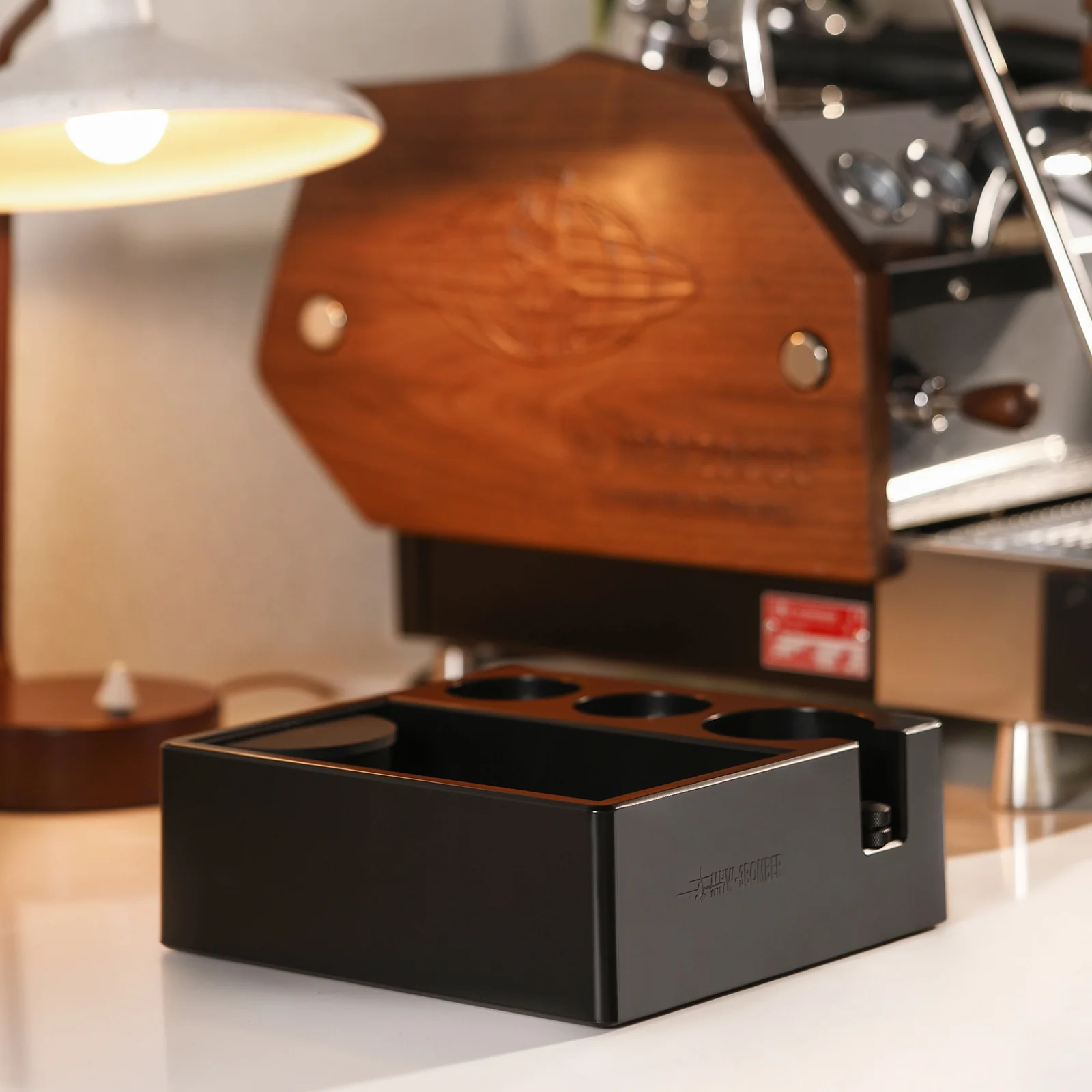 La ranura cilíndrica puede desmontarse libremente. Esta estación de prensado es compatible con portafiltros, tampers y distribuidores de café de 51/54/58 mm.